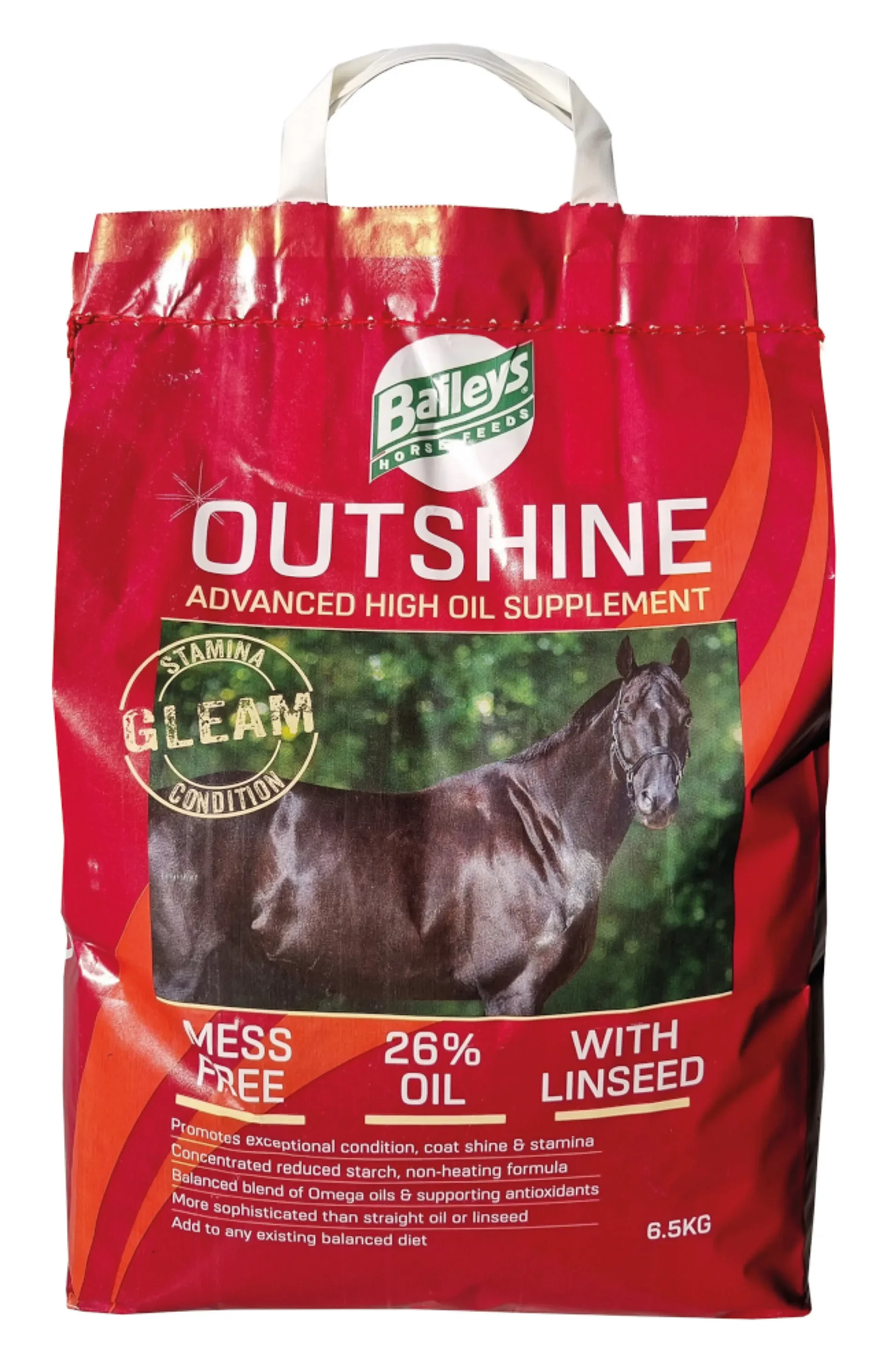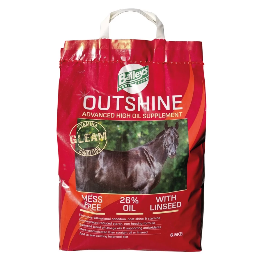 A Baileys Outshine kiegészítő az omega-3 (szójaolajból) és az omega-6 (lenmagból) zsírsavak kiváló forrása, egy termékben hozzájárulva lovad állóképességének elősegítéséhez, csillogóan fénylő szőrzetének kialakításához és szükség esetén súlygyarapodásának támogatásához!