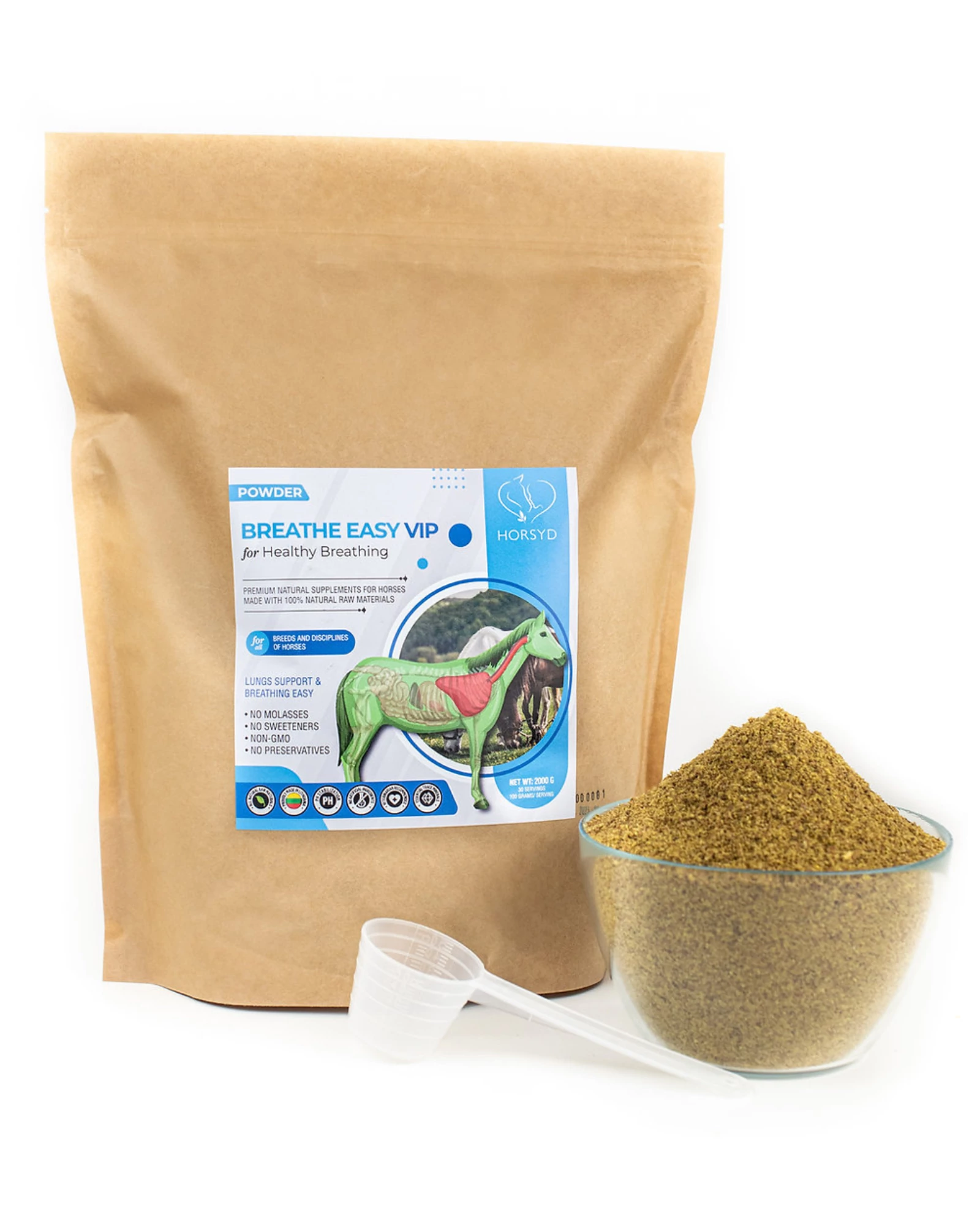 A Breathe Easy VIP kiegészítő takarmány válogatott növényi összetevőket tartalmaz, amelyek hozzájárulnak a lovak takarmányozásának változatosságához, különös tekintettel a légutakkal összefüggő általános jó közérzet támogatására.