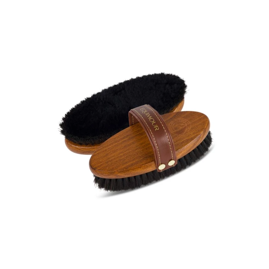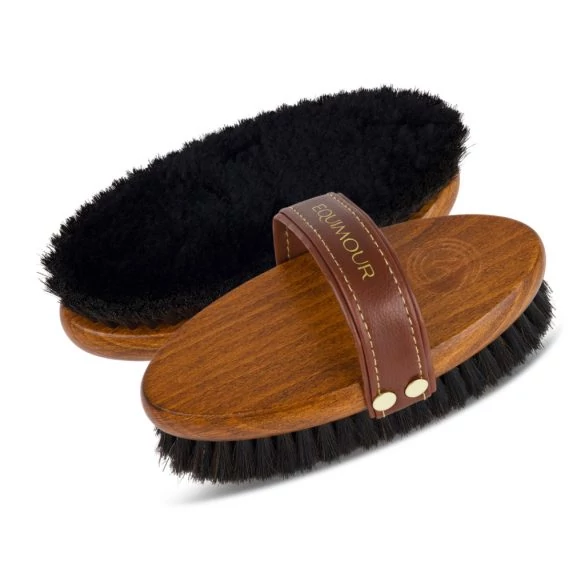 Az Equimour birkagyapjú fényező kefe „FREDO” tökéletes választás lovasok számára, akik különös hangsúlyt fektetnek a gyengéd és hatékony szőrápolásra. Juhgyapjú magjával és finom lószőr sörtéivel eltávolítja még a legfinomabb port is, és ragyogó fényt kölcsönöz lova bundájának – teljesen statikus töltés nélkül.