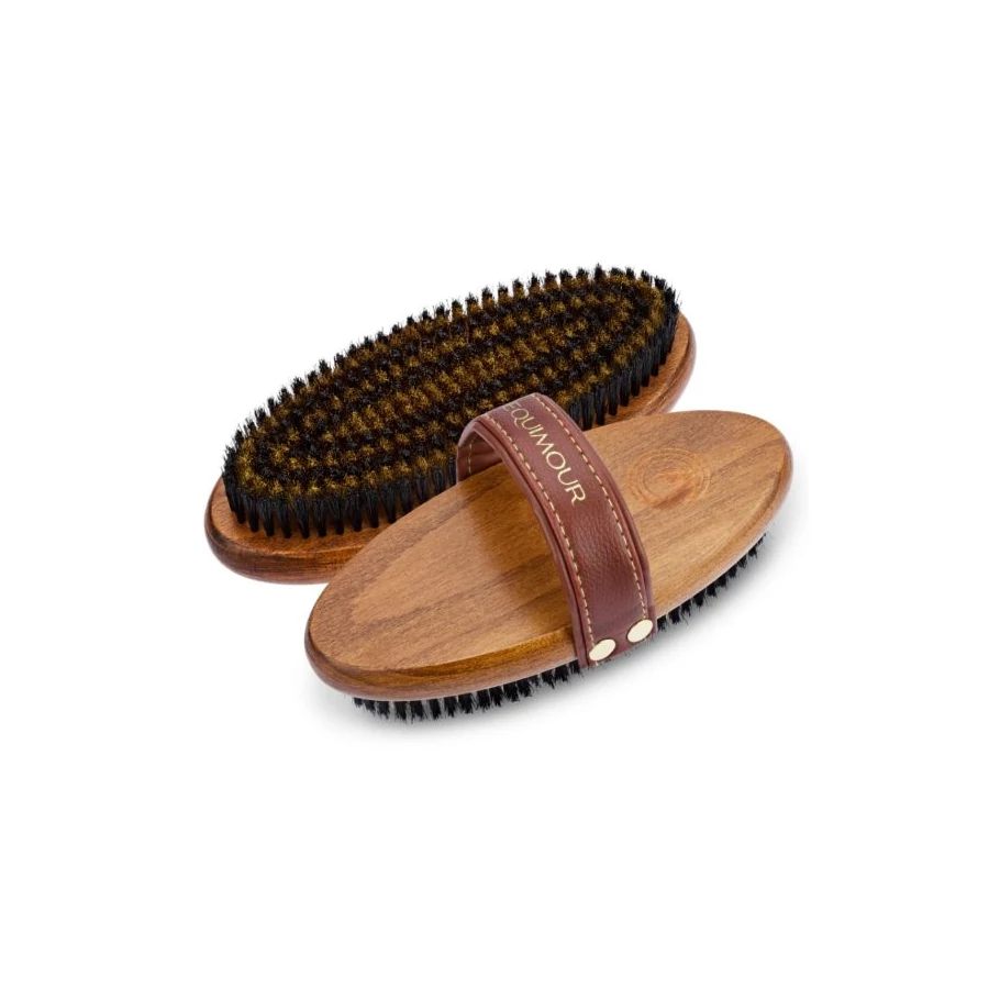 Az Equimour fémkefe „NALA” a robusztus anyagokat elegáns dizájnnal ötvözi, így biztosítva a hatékony és stílusos lóápolást. Finom disznószőr sörték és sárgaréz drót keverékével könnyedén eltávolítja a durva szennyeződéseket és port a szőrzet mélyebb rétegeiből.