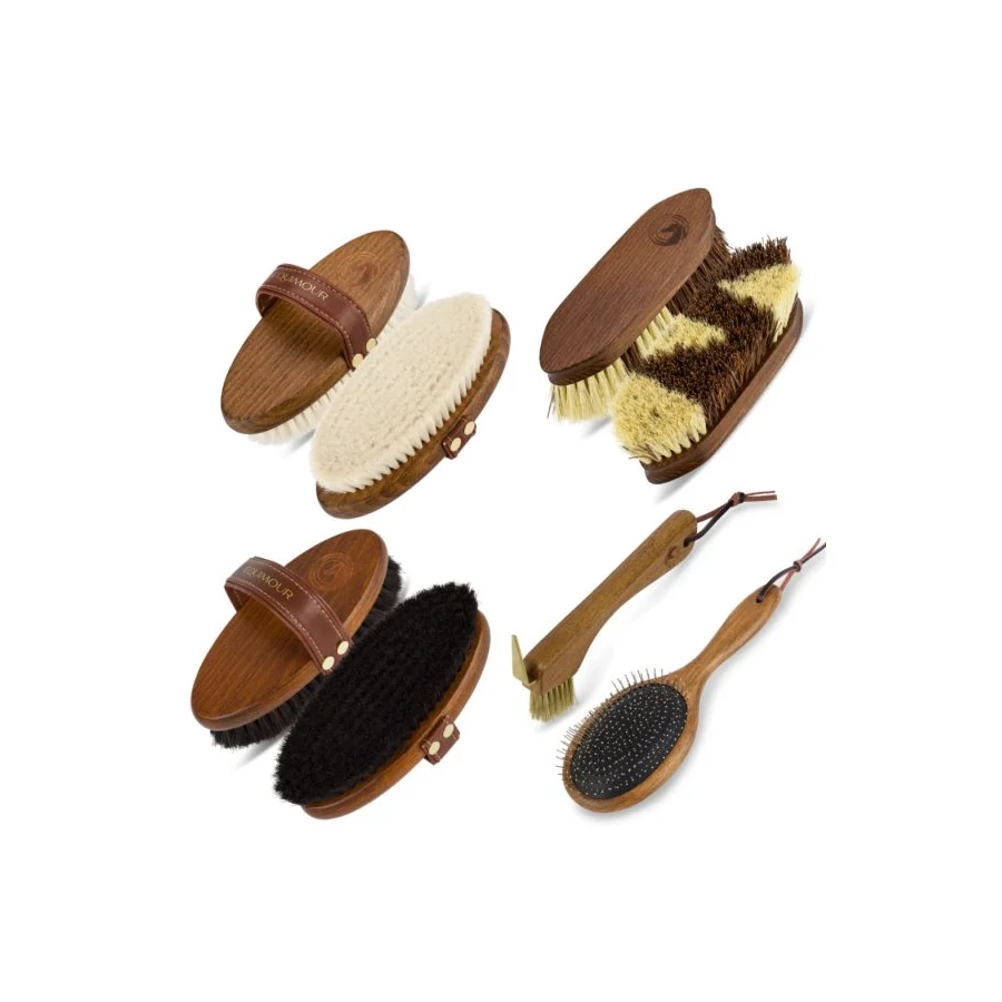 Az Equimour kezdőkészlet ideális alapfelszerelés minden lótulajdonos és lovas számára, aki nagyra értékeli a kiváló minőségű lóápolási termékeket. Ez az 5 darabos készlet a funkcionalitást a stílusos dizájnnal ötvözi, és mindent tartalmaz, amire lova napi gondozásához szüksége lehet.