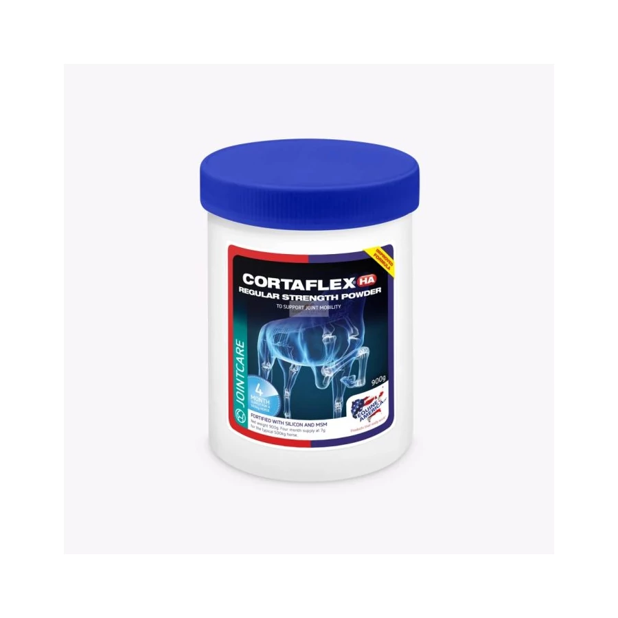A Cortaflex HA Regular por egy letesztelt és kipróbált, kulcsfontosságú összetevőket tartalmazó, alacsony cukortartalmú izületvédő, mely megfelelő választás laminitisre hajlamos lovak számára is. Kollagént. híaluronsavat, nyomelemeket és aminosavakat tartalmaz ezzel elősegítve az izületek épülését, támogatást biztosítva az egészséges izületek és porcok számára. A porcok azok a szivacsszerű, elasztikus anyagok, melyek azoknak a csontoknak a végét fedi, amelyek izülethez kapcsolódnak, ezáltal egy sokk abszorberként funkcionálva, csökkentve ezzel a súrlódást. Az izületifolyadéknak "vastagnak" és nyúlósnak kell lennie, hogy megkenje az izületet és elnyelje a különböző hatásokat, ütődésket, rázkódásokat.