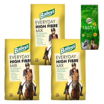 SZABADIDŐS TRIO CSOMAG: Baileys Everyday High Fibre Mix magas rosttartalmú lótáp (müzli) + AJÁNDÉK: Tasty Treats jutalomfalat