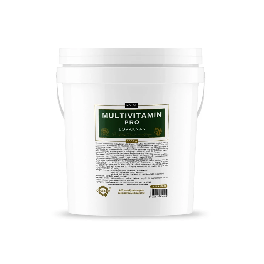 Komplex és kiegyensúlyozott összetételű multivitamin lovaknak, amely átfogó támogatást nyújt a lovak egészsége és vitalitása érdekében.
