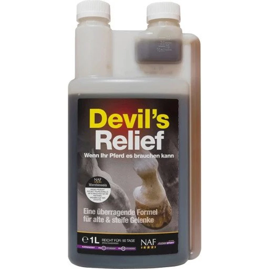 Devil's Relief kiváló minőségű gyógynövény-kivonatokból álló formula afrikai ördögcsáklyával kombinálva. Támogatást biztosít merevség és mozgáskorlátozottság esetén. Összességében elmondható, hogy a gondosan válogatott összetétel minden korosztály, de különösen az idősebb lovak mozgásszervi rendszerét támogatja, és hozzájárul az egészséges emésztéshez is.
